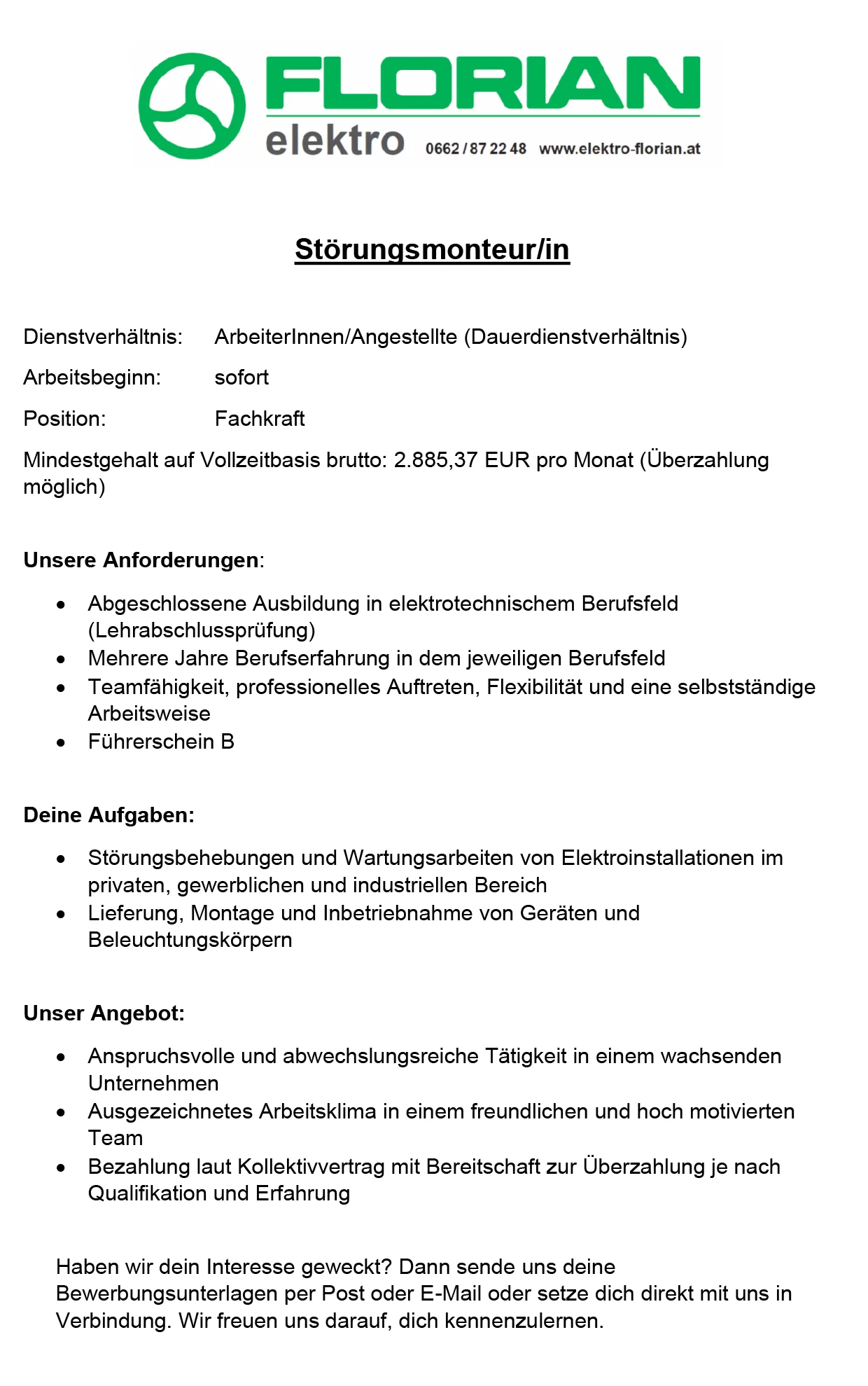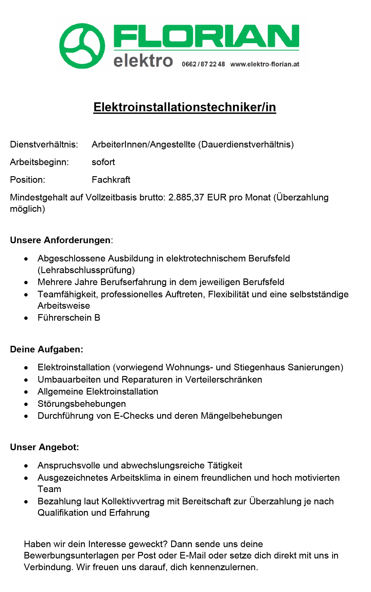 Ihre Bewerbung senden Sie an: office@elektro-florian.at